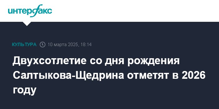 Москва. 10 марта. INTERFAX.RU - Президент России Владимир Путин подписал указ о праздновании в 2026 году 200-летия со дня рождения Михаила Салтыкова-Щедрина.