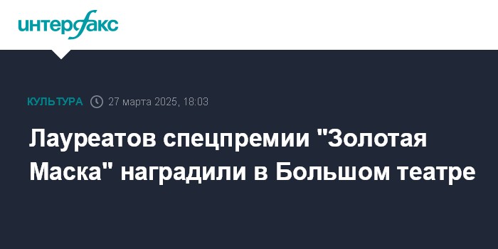 Лауреатов спецпремии "Золотая Маска" наградили в Большом театре