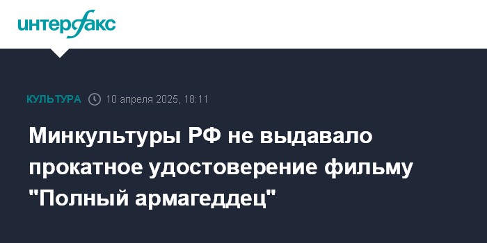 Минкультуры РФ не выдавало прокатное удостоверение фильму "Полный армагеддец"