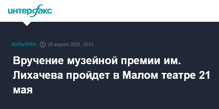 Вручение музейной премии им. Лихачева пройдет в Малом театре 21 мая