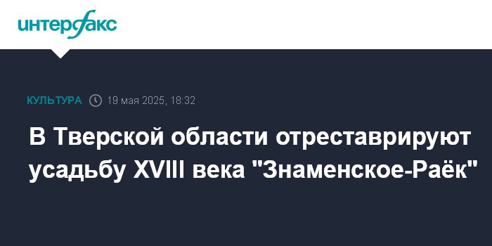 Москва. 19 мая. INTERFAX.RU - В Торжокском районе Тверской области в ноябре 2025 года начнется реставрация дворцово-паркового комплекса XVIII века усадьба "Знаменское-Раёк", сообщает пресс-служба регионального правительства.
