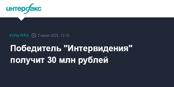 Москва. 2 июля. INTERFAX.RU - Победитель Международного музыкального конкурса "Интервидение" получит денежное вознаграждение в размере 30 млн рублей, следует из положения о проведении конкурса.