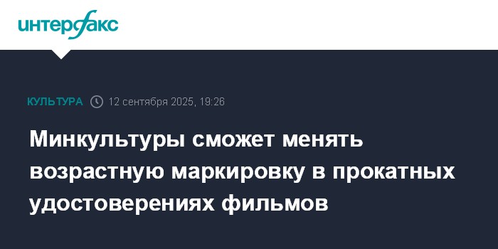 Москва. 12 сентября. INTERFAX.RU - Минкультуры РФ сможет менять возрастной рейтинг фильмов в прокатных удостоверениях для соответствия требованиям действующего законодательства.