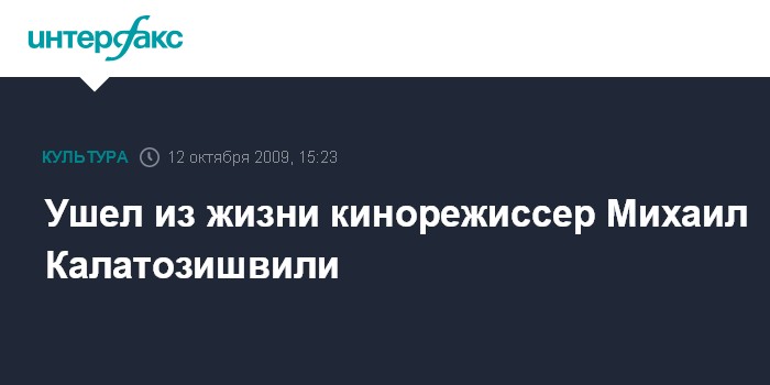 Москва. 12 октября. INTERFAX.RU - На 51-м году жизни в Москве скоропостижно скончался кинорежиссер Михаил Калатозишвили, сообщили "Интерфаксу" в фонде его деда, знаменитого режиссера - Михаила Калатозова.