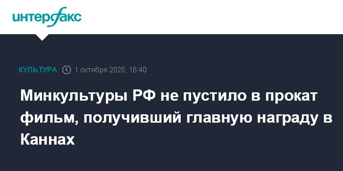 Минкультуры РФ не пустило в прокат фильм, получивший главную награду в Каннах