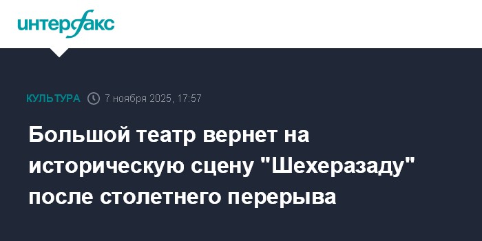 Большой театр вернет на историческую сцену "Шехеразаду" после столетнего перерыва