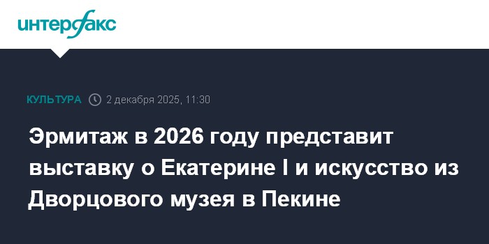 Москва. 2 декабря. INTERFAX.RU - Государственный Эрмитаж в 2026 году планирует провести более 30 выставок, среди которых выставка, посвященная Екатерине I, выставочный проект "Новая" Голландия", где покажут более 100 картин, авторство которых было установлено в ходе научной работы, а также произведения искусства из Дворцового музея в Пекине, рассказывающие об эпохе расцвета последней в Китае империи Цин.