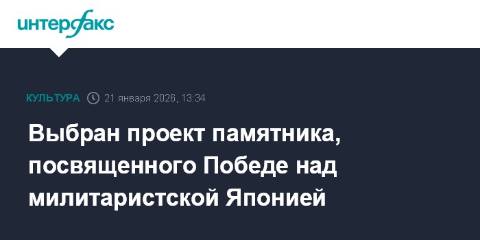 Москва. 21 января. INTERFAX.RU - В Москве выбран проект - победитель творческого конкурса на создание в Хабаровске Мемориала, посвящённого 80-летию разгрома милитаристской Японии и окончания Второй Мировой войны, перед окончательным утверждением он будет доработан.