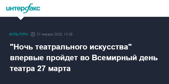 "27 марта 2026 года, во Всемирный день театра, в России впервые пройдет всероссийская акция "Ночь театрального искусства", приуроченная к 150-летию Союза театральных деятелей Российской Федерации", - говорится в сообщении, опубликованном на сайте акции.