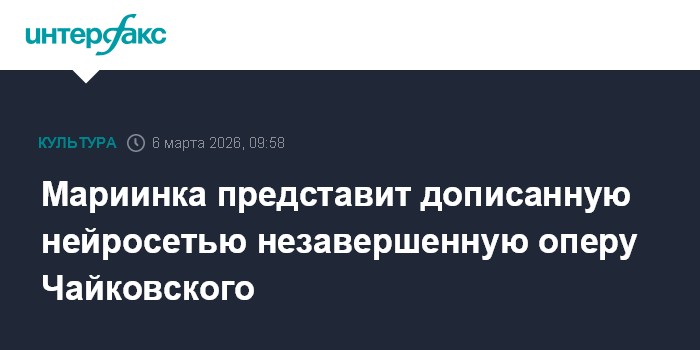 Мариинка представит дописанную нейросетью незавершенную оперу Чайковского