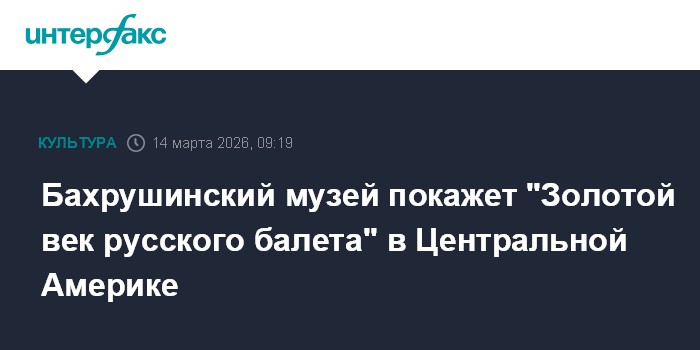 Москва. 14 марта. INTERFAX.RU - Бахрушинский театральный музей откроет в Национальной галерее Коста-Рики в Сан-Хосе выставку "Золотой век русского балета", экспозиция будет включать более 120 архивных материалов из собрания музея; проект планируется представить еще в четырех странах Центральной Америки, сообщили "Интерфаксу" в пресс-службе музея.
