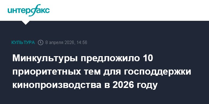 Москва. 8 апреля. INTERFAX.RU - Утвердить приоритетные темы господдержки отечественного кинопроизводства в 2026 году предложило Минкультуры РФ.