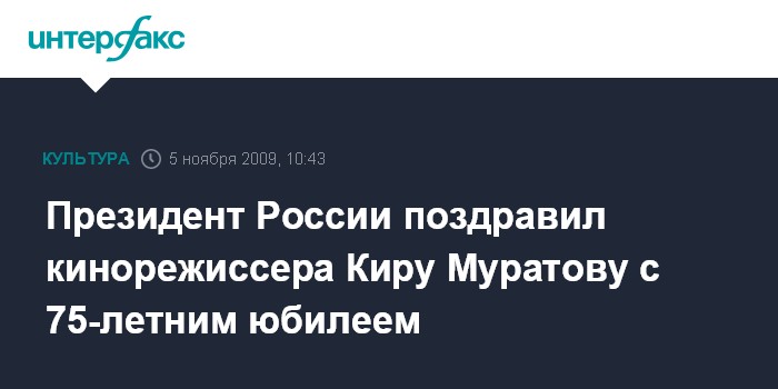 Москва. 5 ноября. INTERFAX.RU – Президент России Дмитрий Медведев поздравил кинорежиссера-постановщика, народную артистку УССР Киру Муратову с 75-летием.
