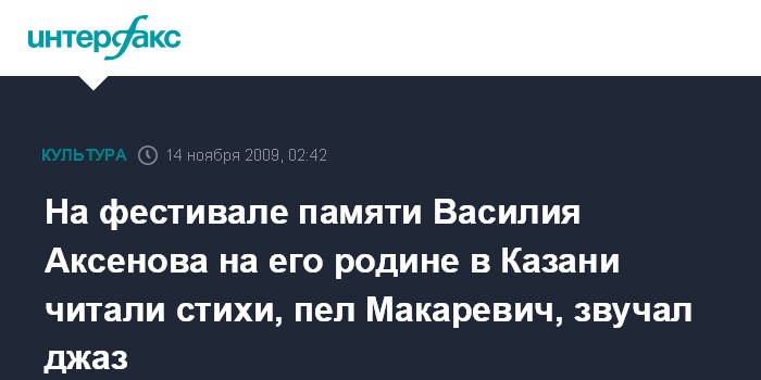 Казань. 14 ноября. ИНТЕРФАКС-ПОВОЛЖЬЕ - Третий литературно- музыкальный фестиваль "Аксенов-фест" завершился поздно вечером в пятницу гала-концертом на сцене Татарского театра оперы и балета на родине писателя Василия Аксенова в Казани, сообщил корреспондент агентства "Интерфакс-Поволжье".