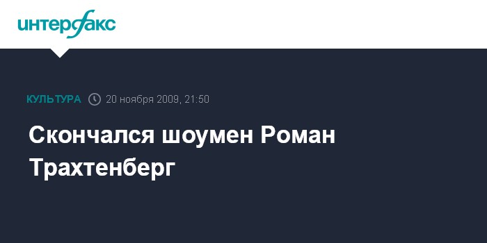 Москва. 20 ноября. INTERFAX.RU - Известный шоумен, актер и радиоведущий Роман Трахтенберг скончался от инфаркта, сообщает радио "Маяк".