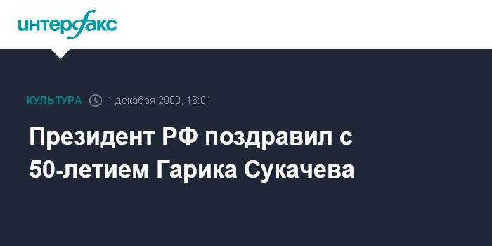 Москва. 1 декабря. INTERFAX.RU - Президент России Дмитрий Медведев поздравил певца и композитора Гарика Сукачева с 50-летием. "Певец и композитор, бессменный лидер группы "Неприкасаемые", Вы стояли у истоков отечественного рок-движения. И сегодня Ваши песни знают и любят не только в России, но и за рубежом. Многогранные дарования и целеустремленность помогли Вам добиться признания не только в музыке, но и в кинематографе - как актеру и режиссеру", - говорится в поздравительной телеграмме, которую цитирует официальный сайт президента РФ.