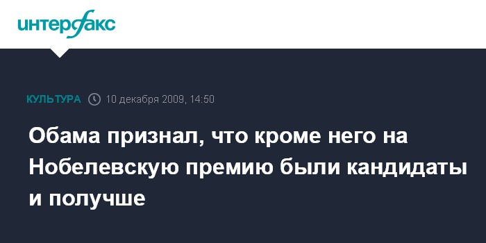Осло. 10 декабря. INTERFAX.RU - Президент США Барак Обама признал в четверг, что, возможно, он был не лучшим кандидатом на получение Нобелевской премии мира этого года.