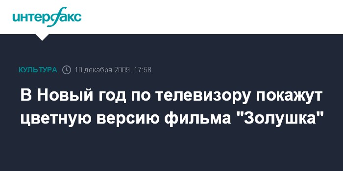 Москва. 10 декабря. INTERFAX.RU - На Первом канале в новогодние праздники известный фильм "Золушка", снятый в 1947-м году, выйдет в цветном варианте.