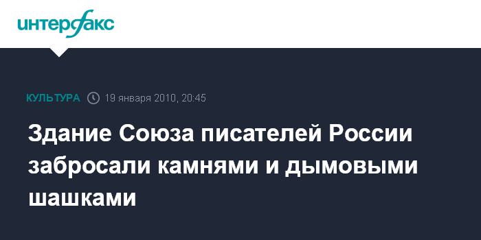 "Группа молодчиков забросала камнями окна здания Союза писателей (СП) России, бросила дымовые шашки и пачку листовок за подписью "Автономные антифашисты Москвы", - сообщил "Интерфаксу" во вторник сопредседатель СП России Сергей Котькало.