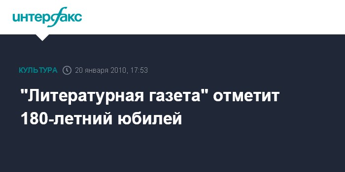 Москва. 20 января. INTERFAX.RU - "Литературная газета", основанная А.С. Пушкиным и А.А. Дельвигом в январе 1830 года, отмечает свой 180-летний юбилей, который планируется провести в формате общенационального культурного события. Среди приглашенных "Литературной газетой" на торжественный вечер в Малом театре президент Российской Федерации Д. А. Медведев, мэр Москвы Ю.М. Лужков, председатель Совета Федерации Государственной Думы С.М. Миронов, председатель Счётной палаты Российской Федерации С.В.Степашин и другие официальные лица, а также известные деятели культуры.