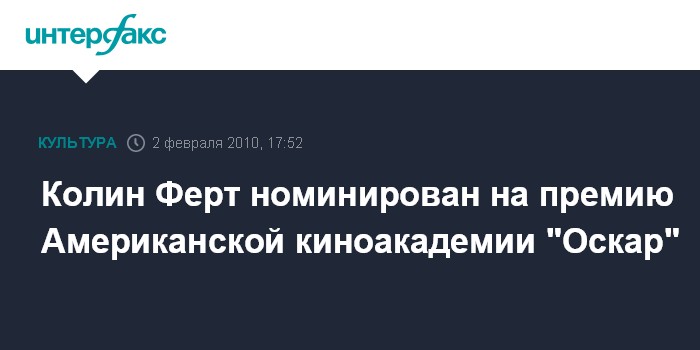Москва. 2 февраля. INTERFAX.RU – Колин Ферт номинирован на премию Американской киноакадемии "Оскар" за лучшую мужскую роль в дебютной картине Тома Форда "Одинокий мужчина".