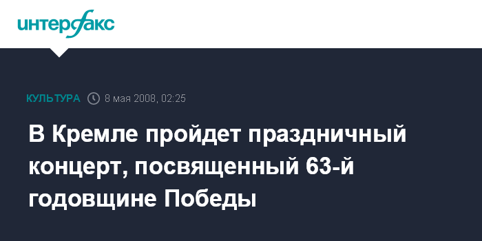 В Кремле пройдет праздничный концерт, посвященный 63-й годовщине Победы