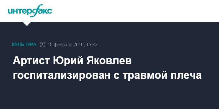 Артист Юрий Яковлев госпитализирован с травмой плеча