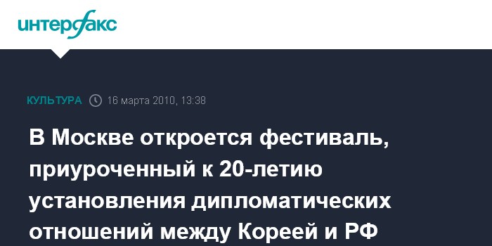 В Москве откроется фестиваль, приуроченный к 20-летию установления дипломатических отношений между Кореей и РФ