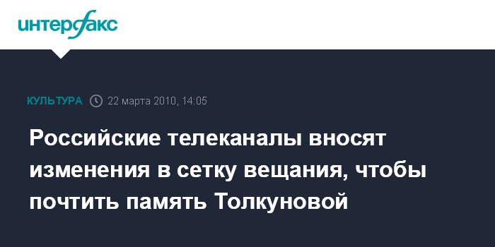 Российские телеканалы вносят изменения в сетку вещания, чтобы почтить память Толкуновой