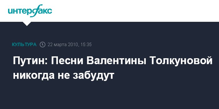 Путин отметил, что творчество Толкуновой, песни в ее исполнении "всегда несли заряд положительных эмоций и душевного тепла. И потому - их не забудут".