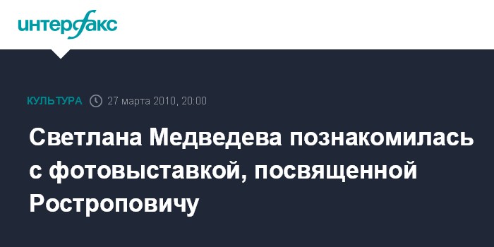 Москва. 27 марта. ИНТЕРФАКС - Супруга президента России Светлана Медведева познакомилась в субботу с фотовыставкой в Колонном зале Дома союзов, посвященной жизни и творчеству Мстислава Ростроповича.