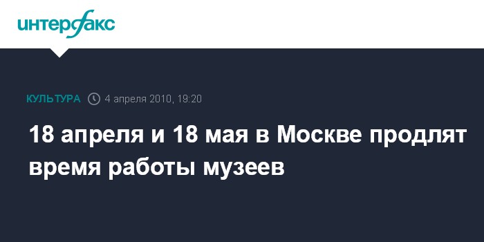 18 апреля и 18 мая в Москве продлят время работы музеев