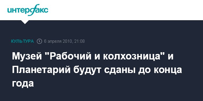 Музей "Рабочий и колхозница" и Планетарий будут сданы до конца года