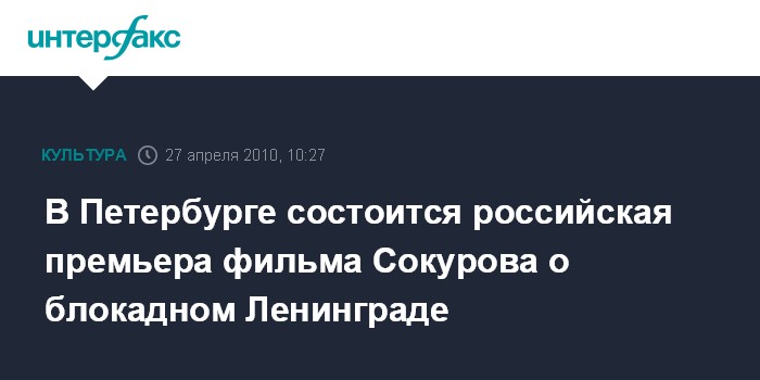 В Петербурге состоится российская премьера фильма Сокурова о блокадном Ленинграде