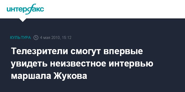 В свою очередь, телеканал "Культура" также планирует показать это интервью Жукова, но уже непосредственно в День победы - 9 мая.