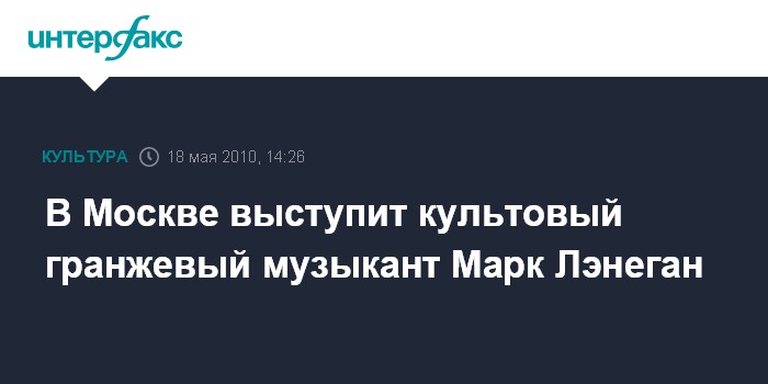 Москва. 18 мая. INTERFAX.RU - Культовый гранжевый музыкант Марк Лэнеган 22 мая выступит с концертом в столичном клубе B2. За свою музыкальную карьеру он успел посотрудничать с такими монстрами этого стиля, как Лэйн Стейли (Alice In Chains) и Курт Кобейн (Nirvana).