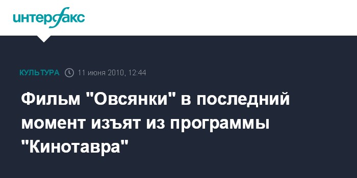 Москва. 11 июня. INTERFAX.RU – Дирекция ОРКФ "Кинотавр" выпустила пресс-релиз о скандальной ситуации с фильмом екатеринбургского режиссера Алексея Федорченко "Овсянки" - участником конкурсной программы фестиваля.