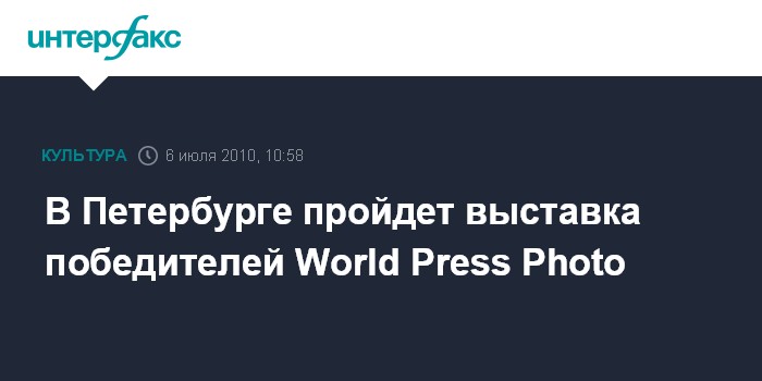 Санкт-Петербург. 6 июля. INTERFAX.RU - Выставка работ победителей одной из самых престижных премий в области фотожурналистики "World Press Photo 2010" пройдет в Петербурге, сообщает пресс-служба лофт-проекта "Этажи" во вторник.