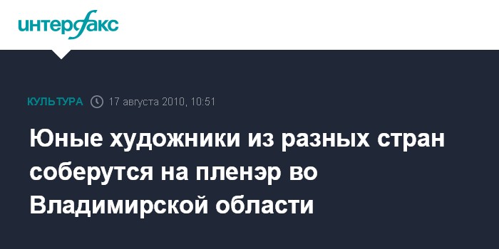 Владимир. 17 августа. INTERFAX.RU - IX Международный пленэр юных художников откроется во Владимире 18 августа, сообщили "Интерфаксу" в комитете по молодежной политике мэрии города.