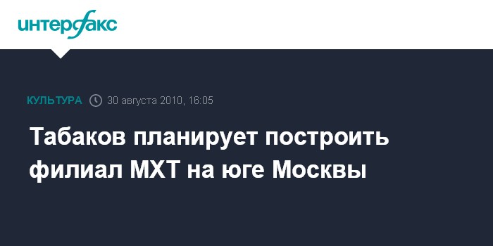 Москва. 30 августа. INTERFAX.RU - Филиал Московского художественного театра будет построен на юге Москвы, сообщил худрук театра Олег Табаков.