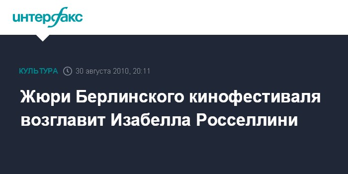 Лондон. 30 августа. INTERFAX.RU - Актриса и режиссер Изабелла Росселлини возглавит судейскую комиссию Берлинского кинофестиваля в 2011 году, сообщает в понедельник BBC со ссылкой на организаторов конкурса.