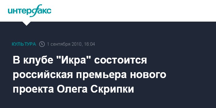 В клубе "Икра" состоится российская премьера нового проекта Олега Скрипки