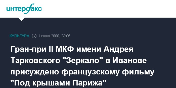 Гран-при II МКФ имени Андрея Тарковского "Зеркало" в Иванове присуждено французскому фильму "Под крышами Парижа"
