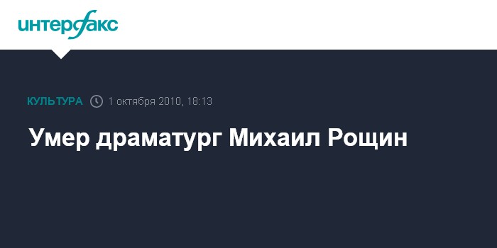 Москва. 1 октября. INTERFAX.RU - Прощание с прозаиком и драматургом Михаилом Рощиным, скончавшимся на 78-м году жизни в пятницу в Москве, пройдет в воскресенье, сообщили "Интерфаксу" в "Центре драматургии и режиссуры" Алексея Казанцева и Михаила Рощина.