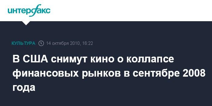 В США снимут кино о коллапсе финансовых рынков в сентябре 2008 года