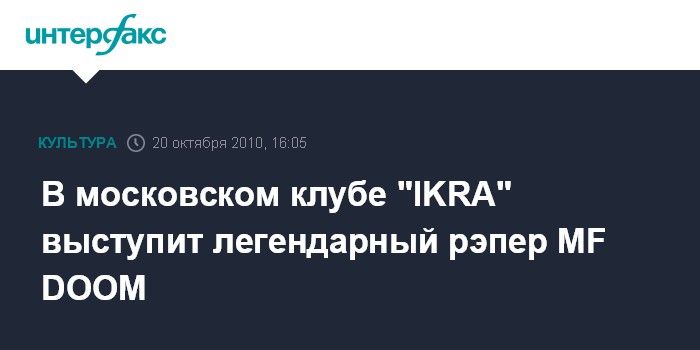 В московском клубе "IKRA" выступит легендарный рэпер MF DOOM