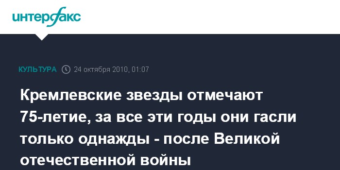 Кремлевские звезды отмечают 75-летие, за все эти годы они гасли только однажды - после Великой отечественной войны