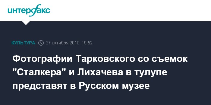 Фотографии Тарковского со съемок "Сталкера" и Лихачева в тулупе представят в Русском музее