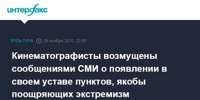 Кинематографисты возмущены сообщениями СМИ о появлении в своем уставе пунктов, якобы поощряющих экстремизм