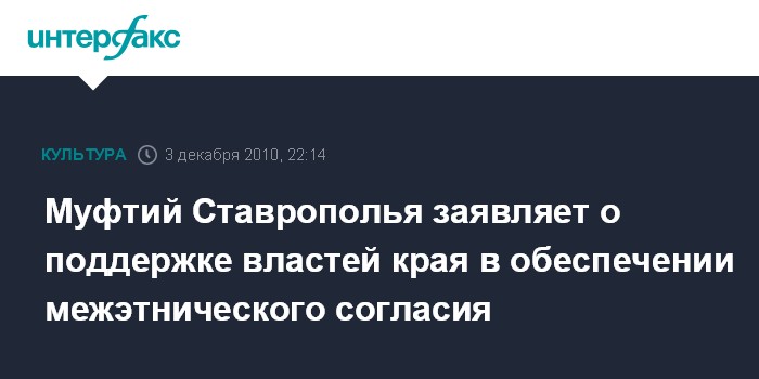 Муфтий Ставрополья заявляет о поддержке властей края в обеспечении межэтнического согласия